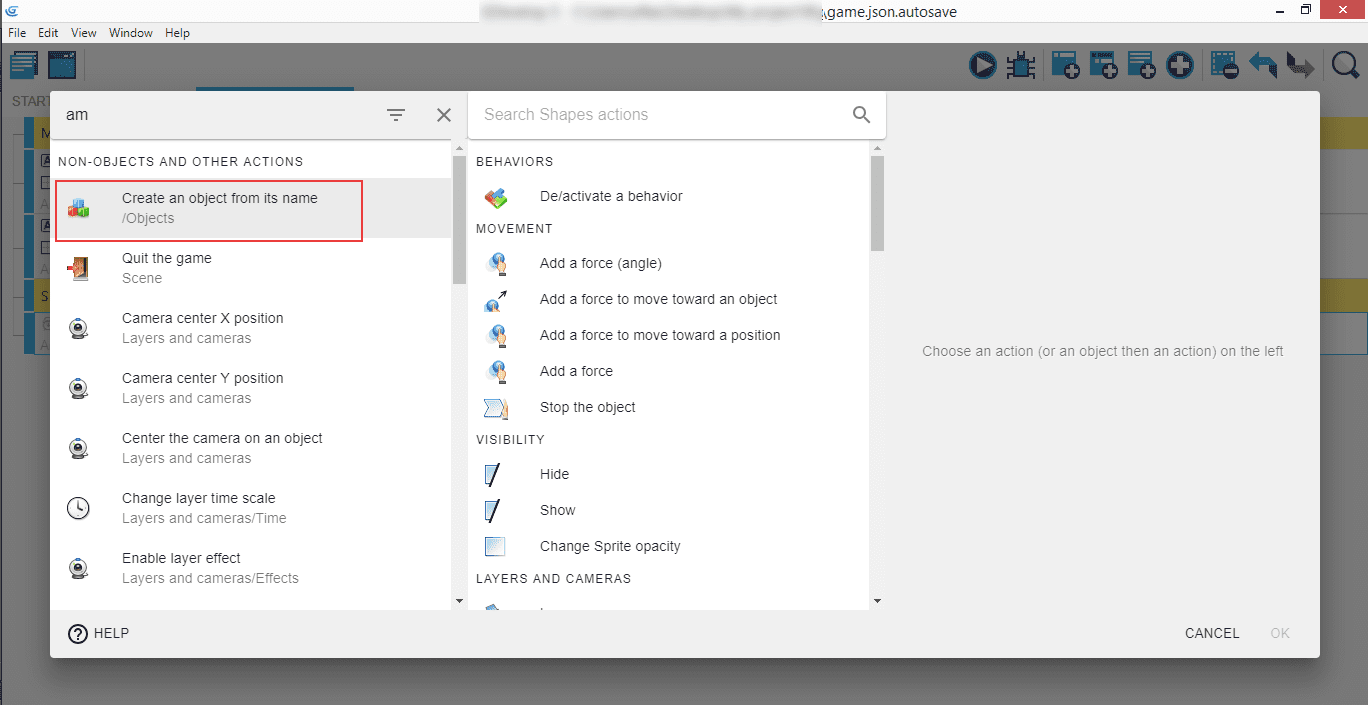 Then search for the "Create an object from its name" that will be listed in the "Non-objects and other actions".