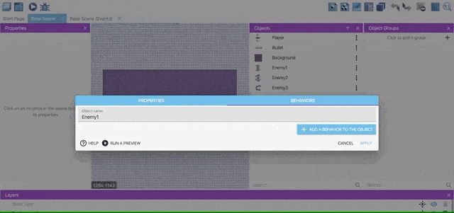We'll now create an object group called "Enemies". This will be useful in events, to refer to all the objects in the group without repeating events for each object.